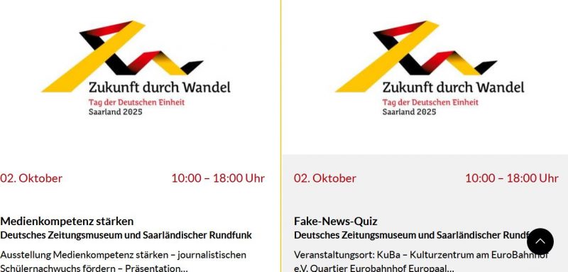 (tutut) - Wandel durch Annäherung oder Nachtwandel, das ist nicht die Frage, wenn am Freitag Saarbrücken Deutschland zur nationalen Feier aufruft. Da können sich die Franzosen schon mal auf eine Einkaufsinvasion über die Grenze freuen. Die Staatskanzlei des Saarlandes ruft am heutigen "Tag der Gewaltlosigkeit" in Erinnerung gegen das Vergessen: "Der Tag der Deutschen Einheit, der jedes Jahr am 3. Oktober gefeiert wird, findet 2025 in Saarbrücken statt. Das Bürgerfest findet unter dem Motto 'Zukunft durch Wandel' vom 2. bis zum 4. Oktober statt und ist kostenlos zugänglich. Die Feierlichkeiten werden in dem Bundesland ausgerichtet, das zum jeweiligen Zeitpunkt den Vorsitz im Bundesrat innehat, und Saarbrücken ist die Landeshauptstadt des Saarlands". Koscht nix? Warum sind dann die Kassen leer, aber voller Sondermüll?