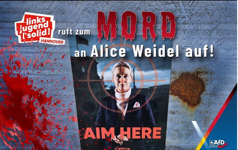 Deutschland im Herbst 2025:Kommunistischer Mordaufruf gegen Weidel (AfD) in Hannover. (Ausriss AfD)