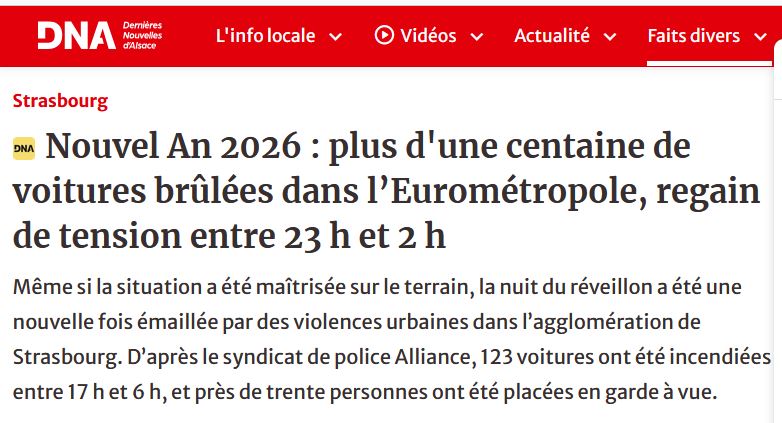 Straßburg brennt - diesseits des Rheins keine Notiz wert. 123 Autos verbrannt.