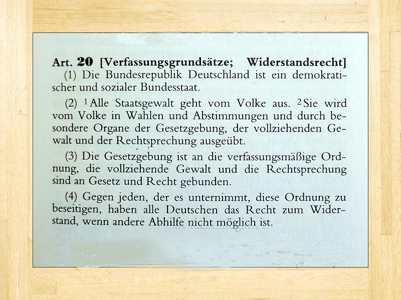 „Gegen jeden, der es unternimmt, diese Ordnung zu beseitigen, haben alle Deutschen das Recht zum Widerstand, wenn andere Abhilfe nicht möglich ist.“