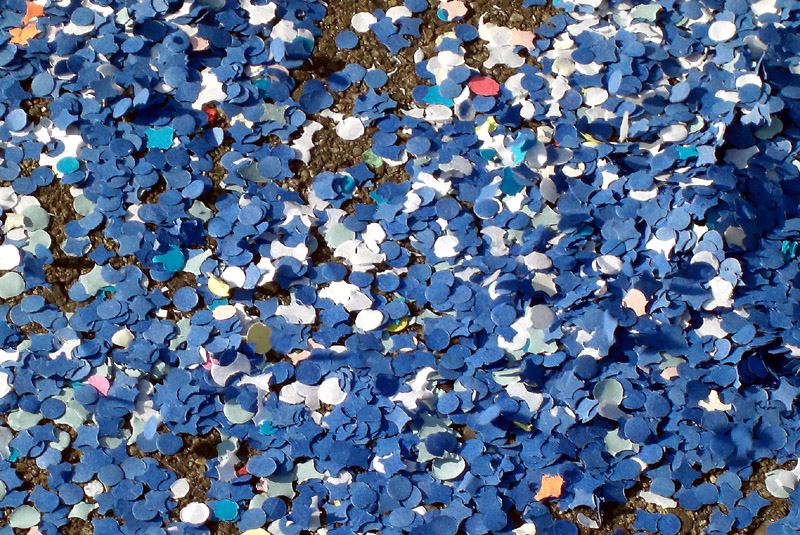 (swr.de. KI: "Ob Konfetti als 'Dreck' angesehen wird, hängt stark vom Kontext und der Perspektive ab: Aus Sicht der Feiernden: Während einer Veranstaltung, wie einer Parade, Party oder Hochzeit, wird Konfetti als dekoratives, festliches Element gesehen, das zur fröhlichen Atmosphäre beiträgt. Aus Sicht der Reinigung: Sobald die Feier vorbei ist, wird Konfetti oft als Müll oder Abfall betrachtet. Es ist notorisch schwer zu reinigen, besonders im Freien, wo kleine Papierschnipsel vom Wind verweht werden können, in Ritzen und Abflüssen landen und möglicherweise die Umwelt verschmutzen. Zusammenfassend lässt sich sagen: Konfetti ist ein gewollter, positiver Dekorationsartikel, der jedoch schnell zur lästigen und schwer zu beseitigenden Verschmutzung wird, sobald sein Zweck erfüllt ist".)